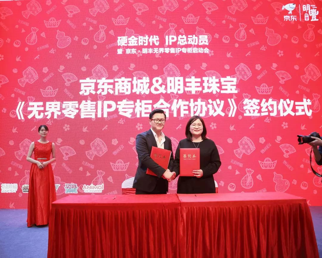 明豐珠寶“IP專門店”,是明豐珠寶硬金精品產(chǎn)品的IP授權(quán)產(chǎn)品系列,其目前擁有招財貓、史努比、大嘴猴、動物大聯(lián)盟、招財童子等眾多知名IP授權(quán),商品將于2018年9月開始陸續(xù)上市。與此同時,《京東無界零售IP專柜》將與眾多知名珠寶品牌企業(yè)開展合作,其模式將植入品牌旗下的終端門店中,進一步拓展無界零售專柜模式。